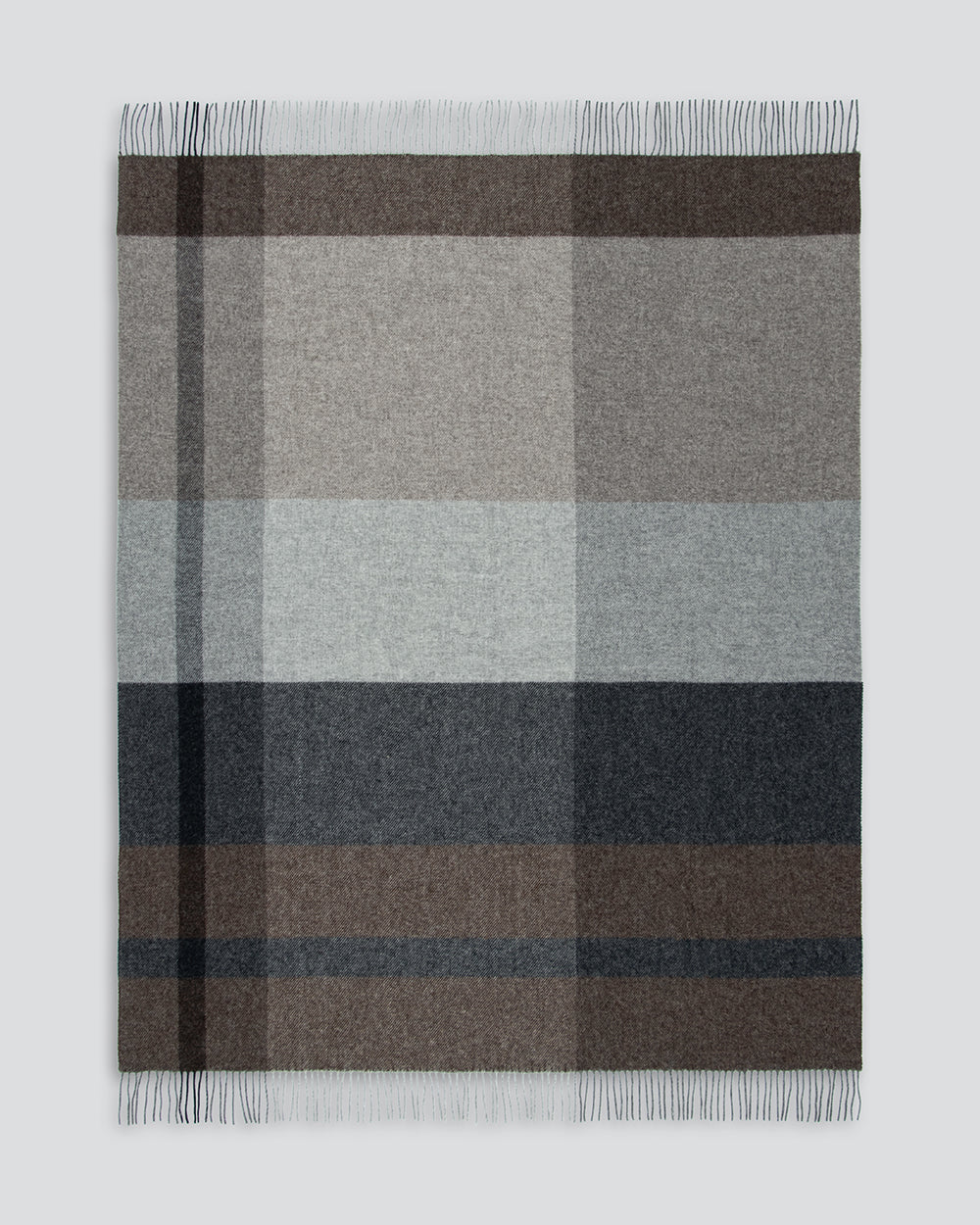 Featuring an offset plaid design, a modern take on country style is celebrated in this luxurious, pure wool throw. Crafted from New Zealand grown wool, the timeless design and warm bark tones creates a reassuring sense of warmth and comfort. Each throw is finished with a traditional twisted fringe.